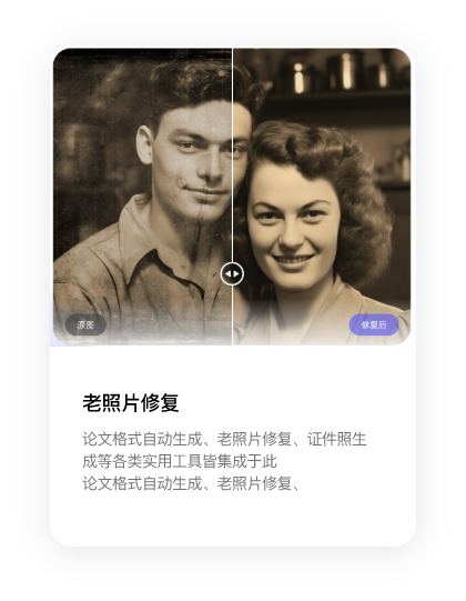 论文格式自动生成、老照片修复、证件照生成等各类实用工具皆集成于此