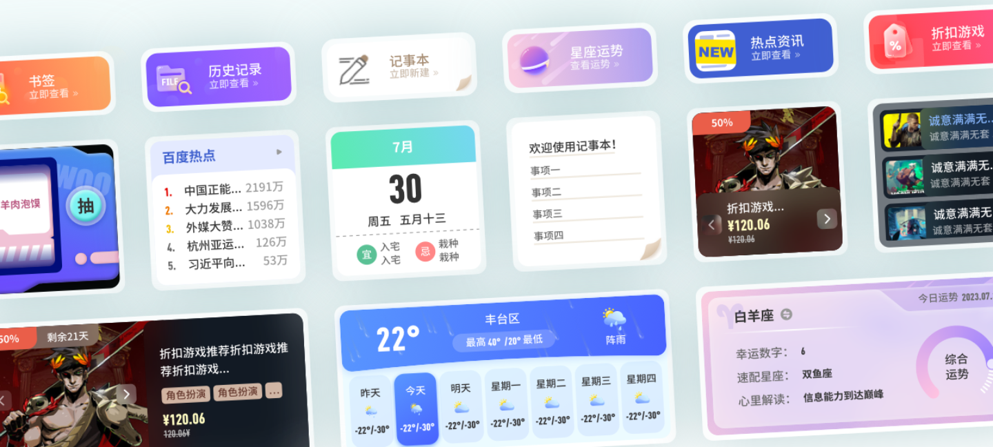 原创海量组件,一键开启,无需下载且免费使用。多种尺寸随心调节,让你的桌面别具一格
